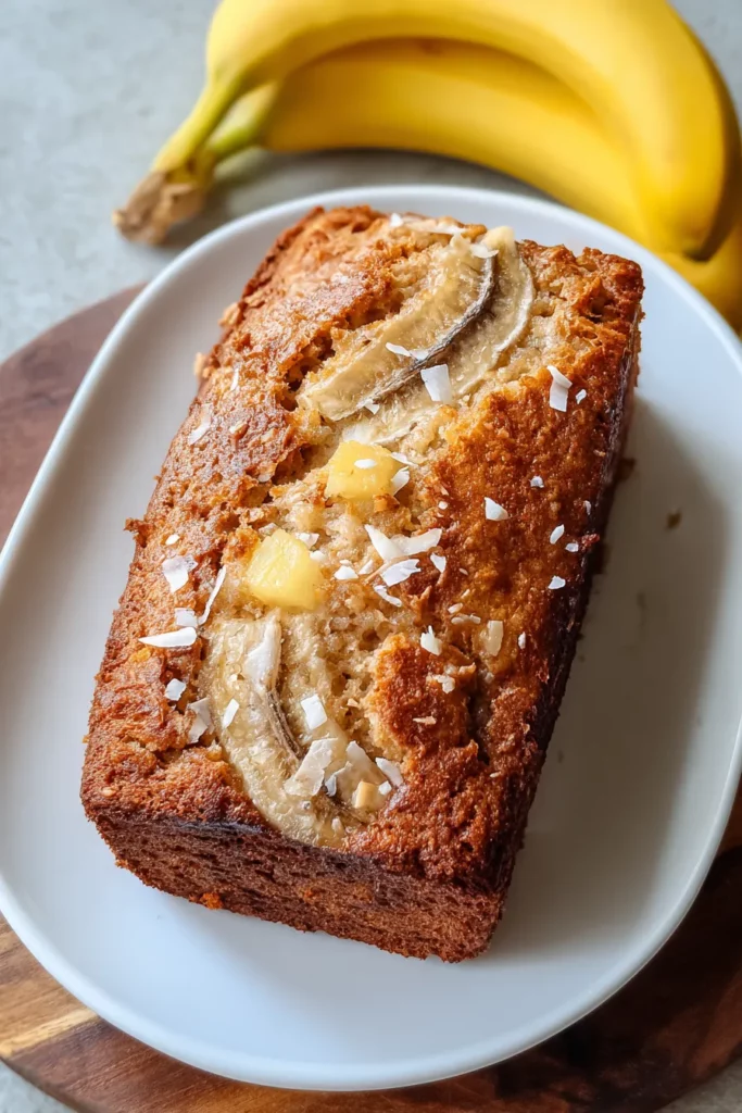 Sweet, moist banana bread infused with tangy pineapple, shredded coconut, and optional macadamia nuts for a crunchy finish. Perfect for a tropical-inspired treat any time of day.