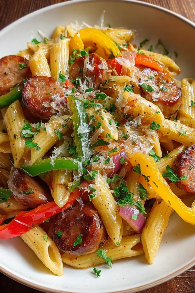 This Cajun Sausage Pasta is a flavor-packed meal featuring smoky sausage, colorful peppers, and a creamy sauce that brings everything together deliciously.