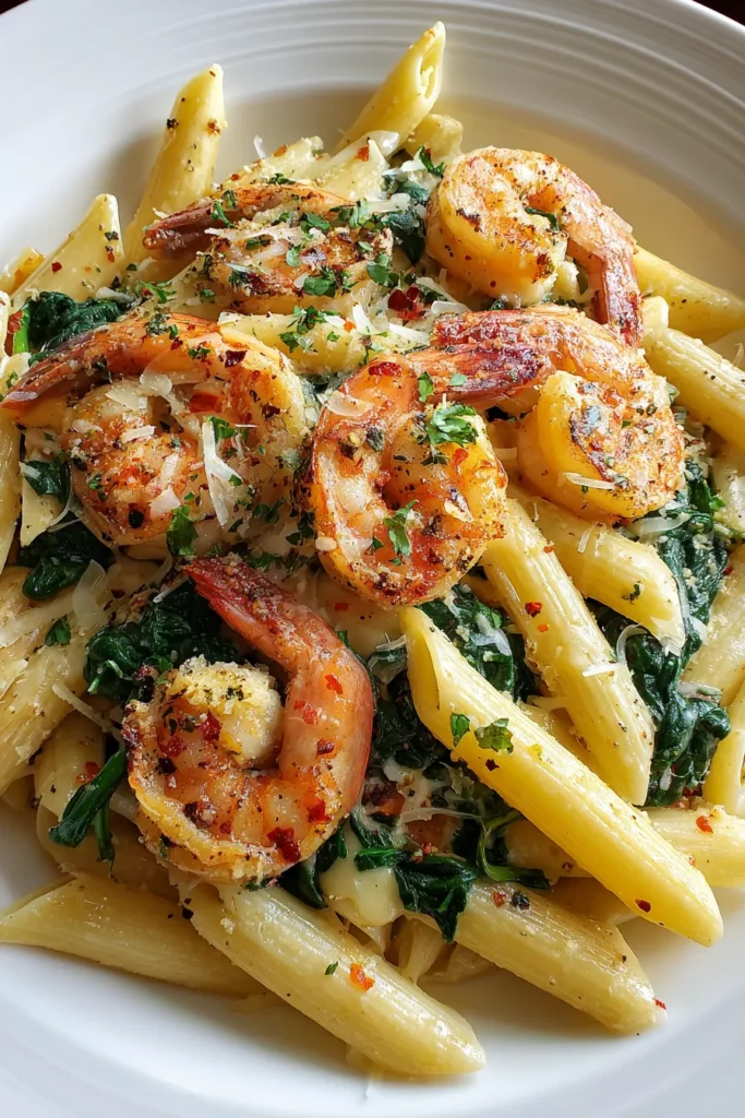 Cheese Shrimp Penne Pasta & Spinach