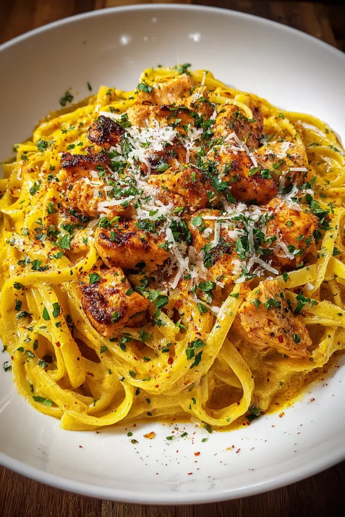 Serve the Cowboy Butter Chicken Linguine warm, garnished with extra parsley or chives if desired.