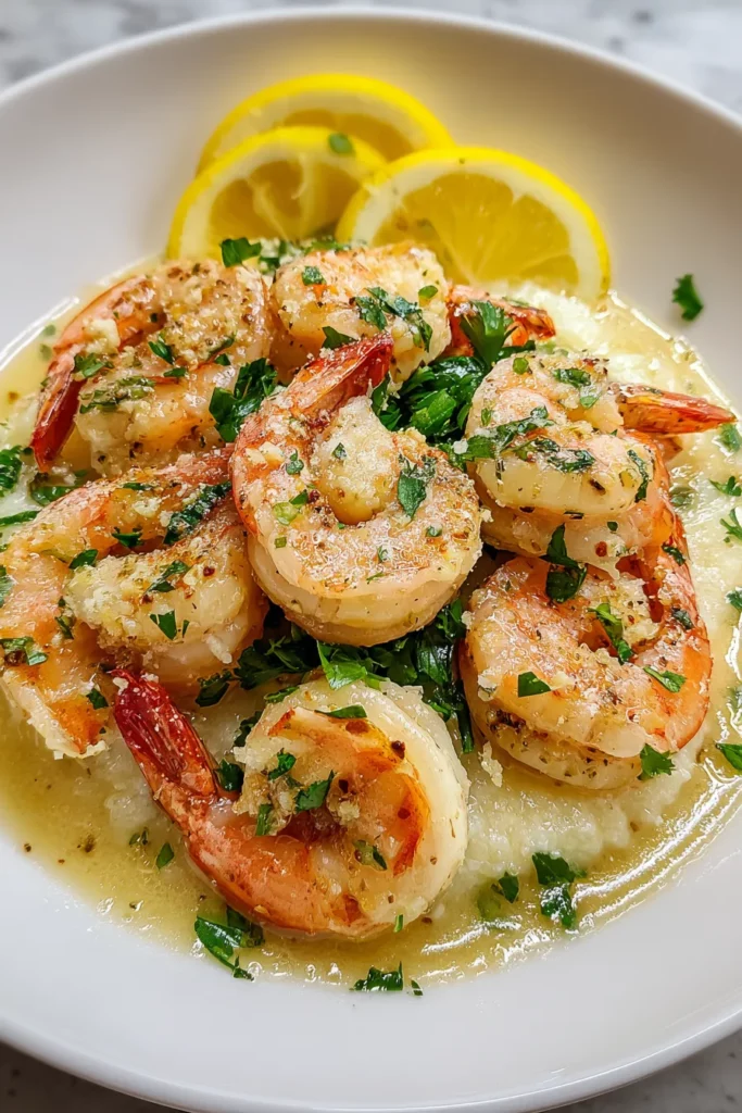 Savor juicy shrimp bathed in a lush garlic-infused cream sauce with Parmesan, finished with fresh parsley and a hint of spice for a truly irresistible meal.