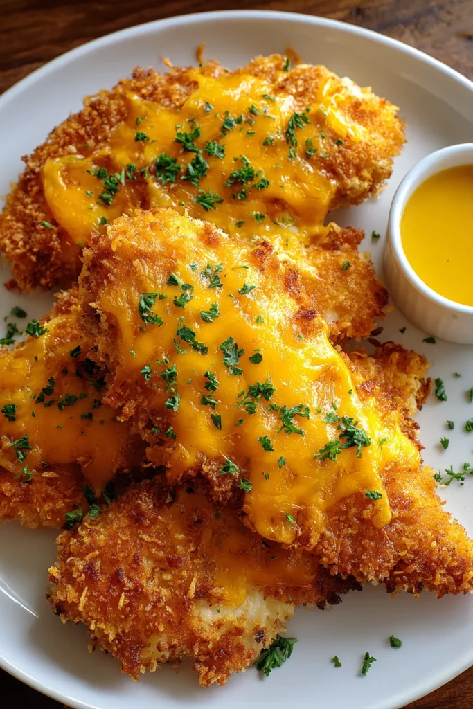 This Crispy Cheddar Chicken features tender chicken strips enveloped in a crunchy coating of breadcrumbs and rich cheddar cheese. Each bite is packed with flavor, perfect for a weeknight dinner or family gathering.