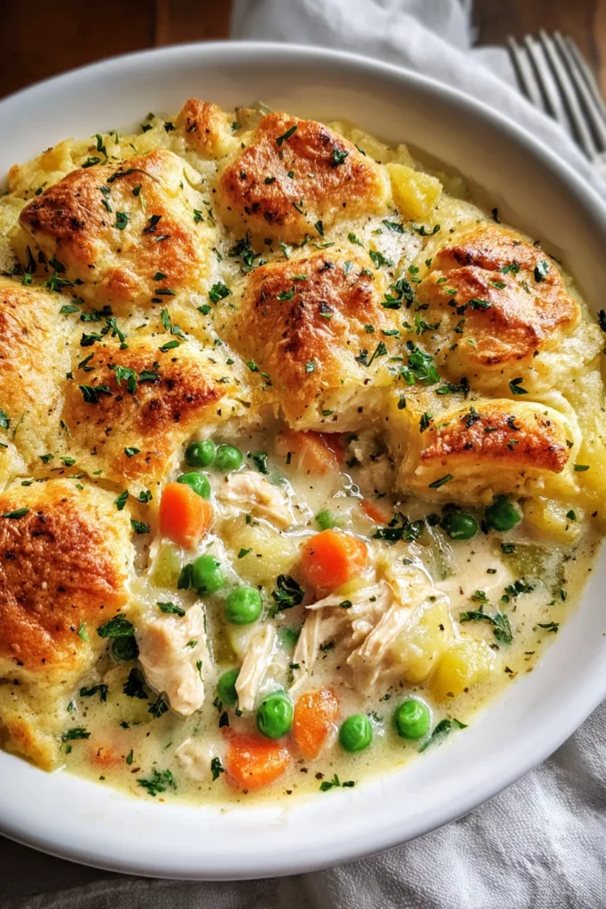 Thank you for taking this flavorful journey through the world of crustless chicken pot pie. We’ve explored how to transform simple ingredients—tender chicken, vibrant vegetables, aromatic herbs, and a creamy sauce—into a dish that’s both hearty and comforting. From browning the chicken to whisking the perfect sauce, every step contributes to a pie that’s bubbling with warmth and flavor. Whether you’re new to cooking or an experienced home chef, this recipe is approachable, flexible, and always satisfying. Feel free to print this article and keep it in your recipe binder or digital folder so you can whip up this crowd-pleaser anytime the craving strikes.