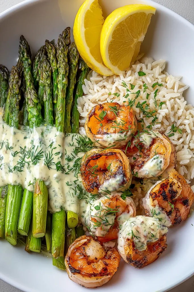 This Grilled Shrimp Bowl with Asparagus & Creamy Garlic Sauce delivers on every front: a balanced blend of textures, vibrant flavors, and a stunning presentation that feels both gourmet and approachable. From the floral notes of jasmine rice to the smoky grilled shrimp and earthy asparagus, each component has its moment. The creamy garlic sauce ties it all together with rich, tangy elegance that makes you feel like you’re dining at an upscale seaside bistro. Whether you’re gathering friends for a laid-back dinner or simply treating yourself to a weeknight upgrade, this dish is designed to impress and comfort in equal measure.