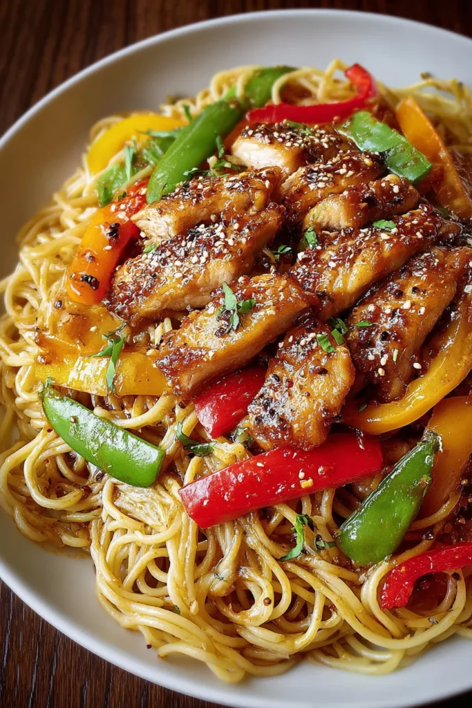 This Honey Pepper Chicken Pasta combines tender chicken glazed in a sweet and spicy honey sauce with al dente pasta and vibrant veggies, creating a delightful dish for any occasion.