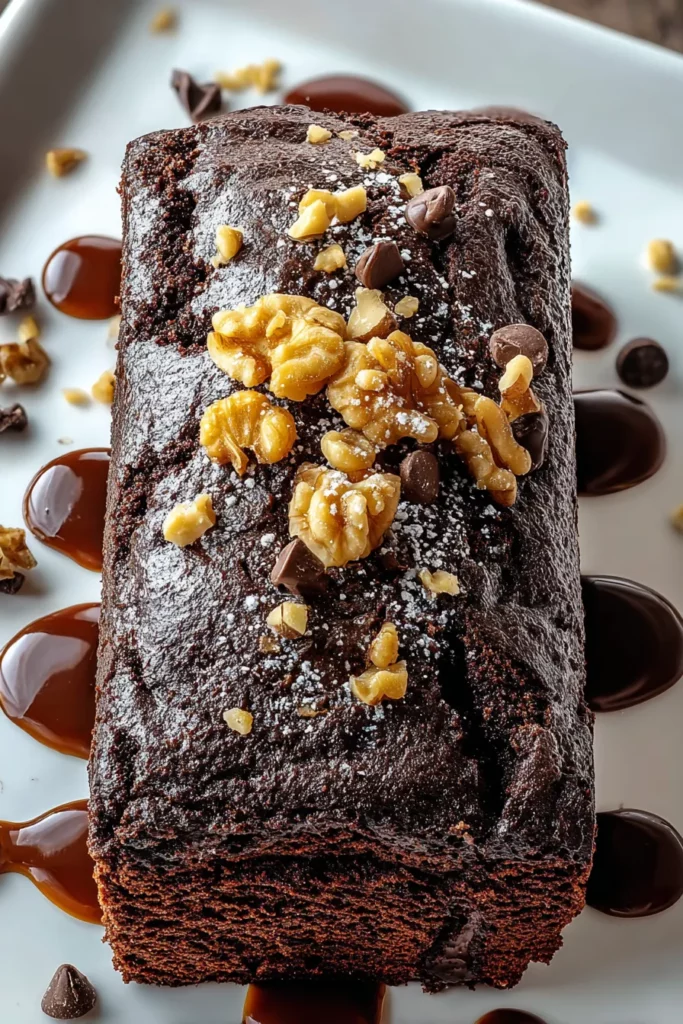 Place slices or the whole loaf in an airtight container and refrigerate for up to 5 days. Chilling intensifies the chocolate flavors but may firm up the loaf slightly. Warm slices briefly before serving to revive the fudginess.
