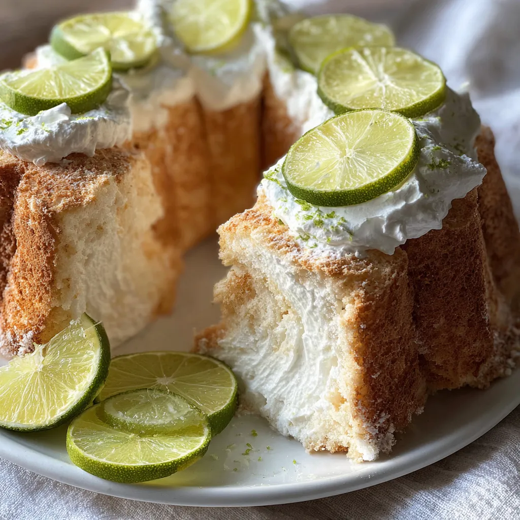 This feather-light angel food cake is infused with tart key lime juice and layered with a velvety lime-scented cream. Each bite offers cloud-like sponge and a refreshing citrus punch.