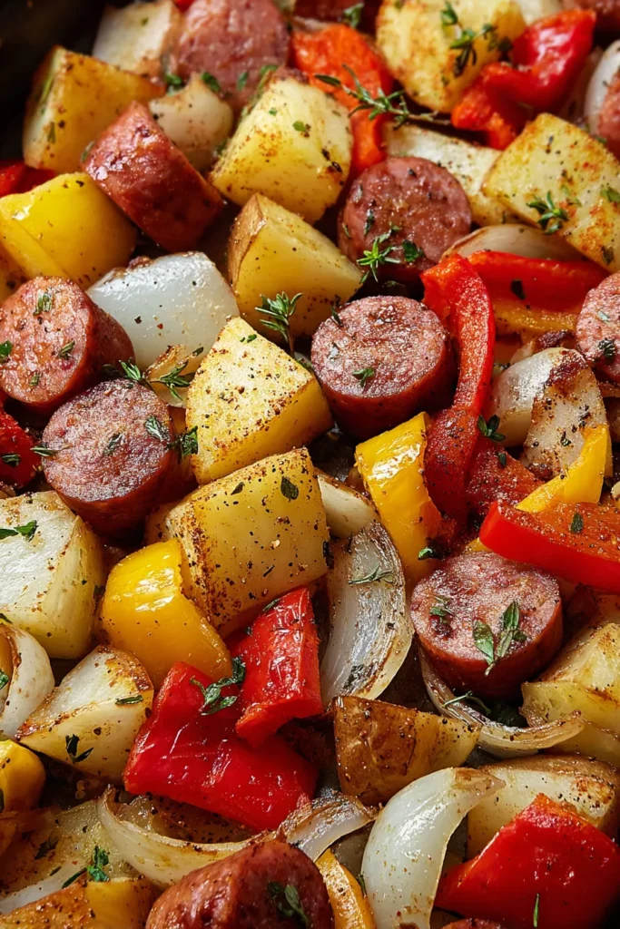 Every bite sparks a little celebration of textures and flavors. The potatoes get a crispy edge that gives way to a fluffy interior, while the peppers and onions turn soft and sweet, soaking up olive oil and garlic. The smoky kielbasa adds savory depth, making each forkful feel indulgent yet unfussy. Whether you’re feeding a crowd or meal-prepping lunches for the week, this one-pan wonder adapts effortlessly: swap in Brussels sprouts in autumn, toss in mushrooms for extra umami, or dial up the heat with a pinch of cayenne. It’s the kind of recipe you’ll bookmark, share, and—most importantly—make again and again, because it never fails to hit that sweet spot between easy and unforgettable.