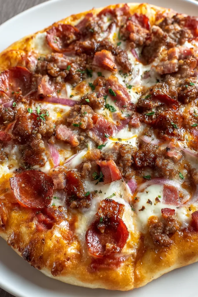 This Meat Lovers Pizza has taken us on a journey from kneading dough to savoring every chewy, crispy, meaty bite. We’ve covered the essential ingredients—everything from a sturdy, golden crust to a rich tomato sauce, loads of gooey mozzarella, and a carnivore’s dream lineup of Italian sausage, bacon, pepperoni, ham, salami, and Canadian bacon. Along the way, you learned the insider tips for achieving the perfect bake: preheating with a pizza stone, brushing the crust with olive oil for that enticing golden hue, and layering meats for balanced flavor in each slice. You’ve also discovered creative ways to serve and store your creation, ensuring that every leftover slice stays just as heavenly as the first.