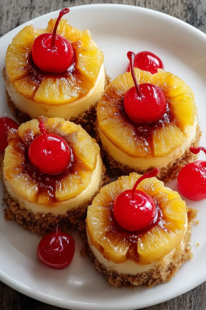 - Drizzle each mini cheesecake with a thin ribbon of warm caramel sauce or dulce de leche just before serving. The sweet, buttery notes pair beautifully with the tangy pineapple and creamy filling, adding an indulgent flourish.