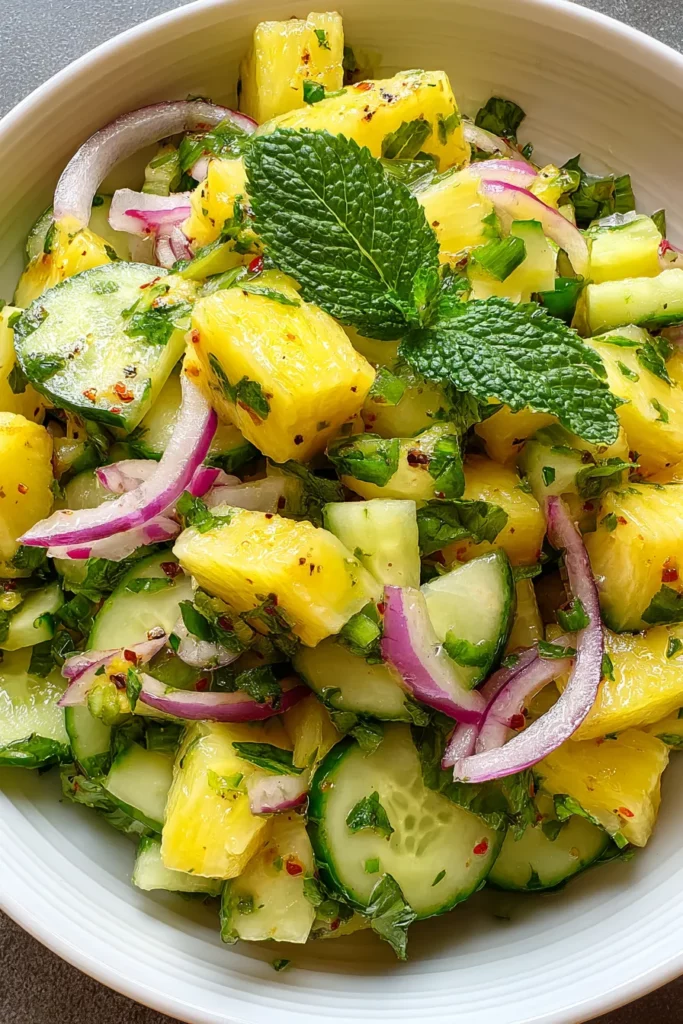 - Cucumber: Adds a cool, crisp texture and mild taste that complements the pineapple’s sweetness, perfect for a refreshing crunch.