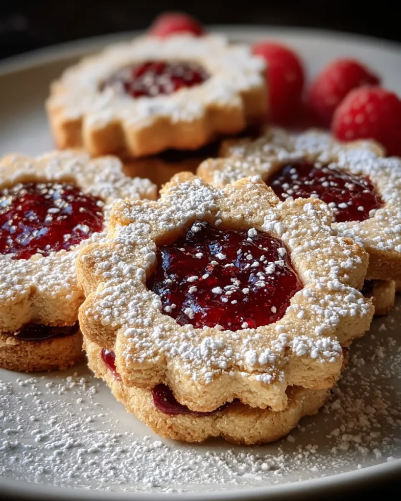 Diving into this recipe, you’ll find it sits at an intermediate difficulty level—perfect for home bakers who have some confidence with rolling dough and using a cookie cutter, yet still want a foolproof guide to follow. With a total preparation time of 30 minutes, a rest or chill time of 30 minutes, and 15 minutes in the oven, you can have a full batch of 24 cookies ready in just over an hour. Each cookie clocks in at around 120 calories, making them an indulgent yet perfectly portioned treat. From the initial creaming of butter and sugar to the final dusting of powdered sugar, every step is straightforward, and you’ll end up with a festive assortment of jam-topped treasures. So grab your apron, crank up your mixer, and let’s bake something unforgettable together!