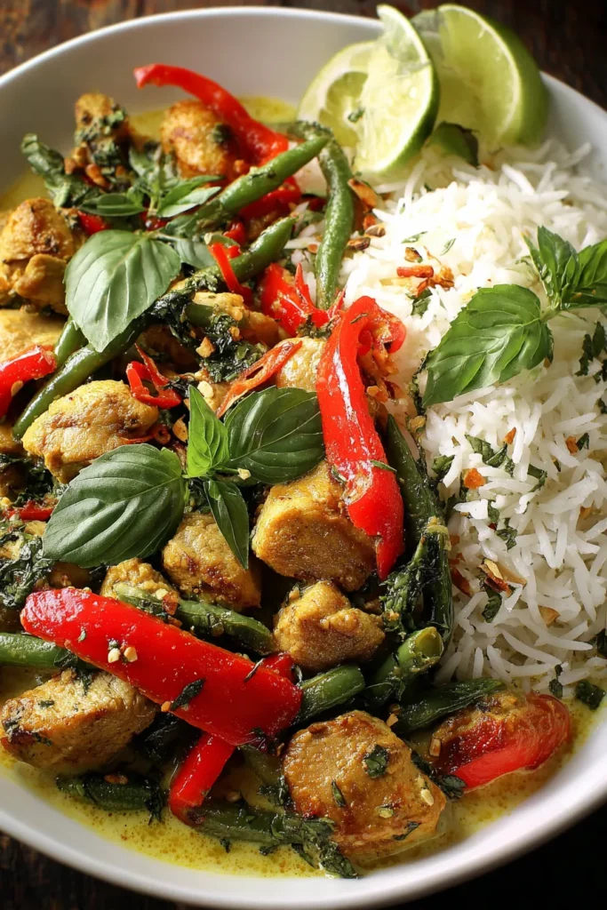 What really takes this recipe over the top, though, is the basil. Roughly chopped and stirred in right before serving, those vibrant green leaves release an herbal, slightly peppery fragrance that makes your kitchen smell like a street food stall in Bangkok. Each mouthful delivers a symphony of flavors: savory chicken, creamy coconut, bright citrus, fiery chili, and fragrant basil. Whether you’re hosting friends or craving a solo comfort meal, this intermediate-level recipe delivers big on flavor while remaining wonderfully approachable.