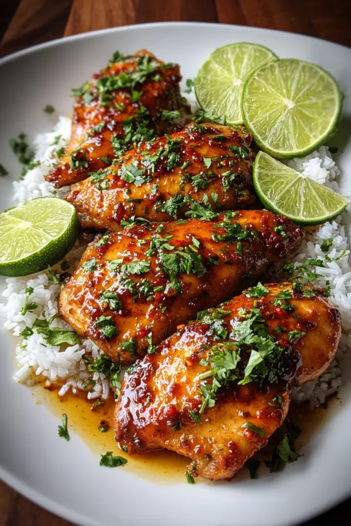 I still remember the first time I tried this marinade on my old charcoal grill: the sizzle as the chicken hit the grates, the gentle flare-ups that kissed the edges with a light char, and the intoxicating scent of honey caramelizing against smoky embers. Even if you’re using a grill pan on the stove, you’ll capture that same irresistible crust. Once the chicken’s done, a sprinkle of fresh cilantro and a squeeze of lime wedges tie everything together, making every forkful a celebration. If you love dishes with layers of flavor—sweet, tangy, savory, and just the right amount of spice—this is going to become your new go-to dish.