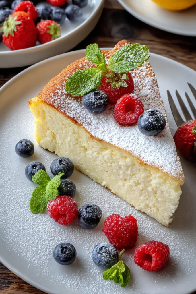 On my first attempt, I remember peeking into the oven every five minutes, mesmerized by how the whisked egg whites transformed into a cloud-like batter that seemed to float on top of the yogurt mixture. When I finally sliced into the cooled cake, the tender interior practically melted on my tongue, leaving the perfect balance of citrus brightness and creamy tang dancing on my palate. The ease of this recipe lies in its straightforward steps: a quick 20-minute prep, a gentle 40 to 45 minutes of baking, and a patient one-hour rest in the slightly ajar oven to prevent those dreaded cracks. Finished off with a snow-drift of powdered sugar and crowned with jewel-toned berries, it’s not just a dessert—it’s a conversation starter. Perfect for family gatherings or a solo treat with an afternoon coffee, this light dessert exemplifies the magic you can create in your kitchen when you embrace simple ingredients and a little patience. Get ready to wow your friends and family with this simple-yet-spectacular fluffy cake!